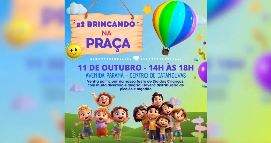 Neste sábado, 11 de outubro, a Avenida Paraná, no centro de Catanduvas, será palco do 2º Brincando na Praça, um evento preparado para comemorar o Dia das Crianças com muita alegria e diversão. A programação acontece das 14h às 18h com distribuição gratuita de picolés e algodão-doce, tornando o dia ainda mais saboroso.