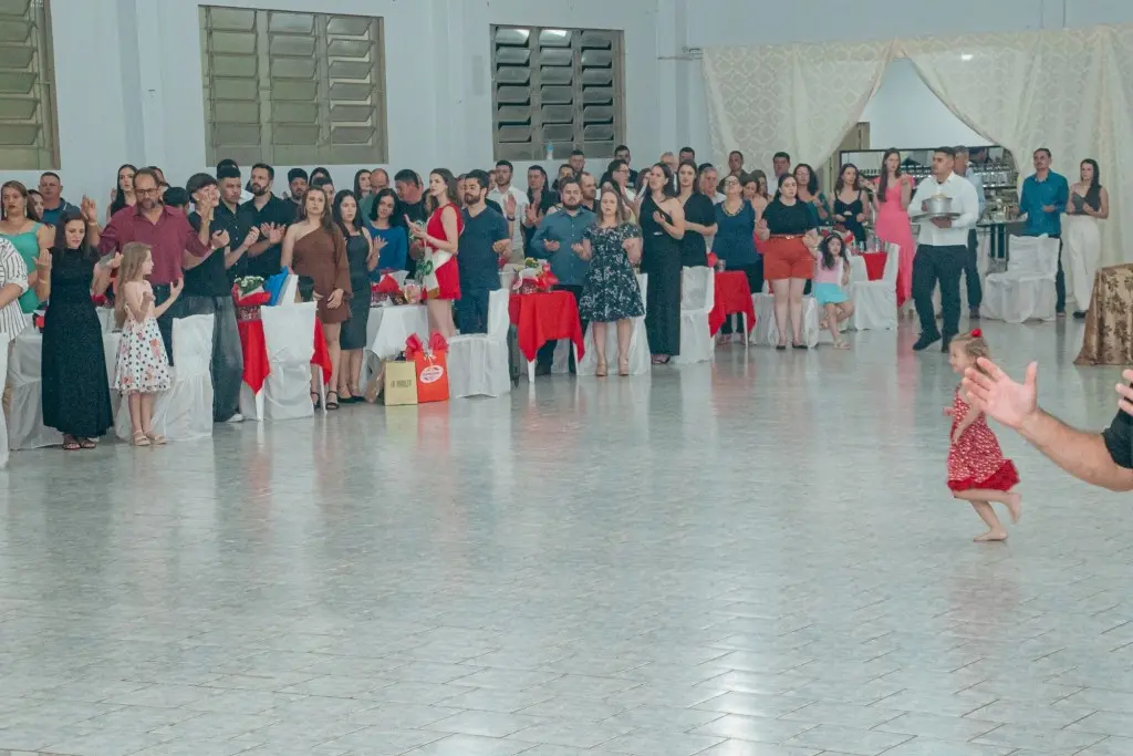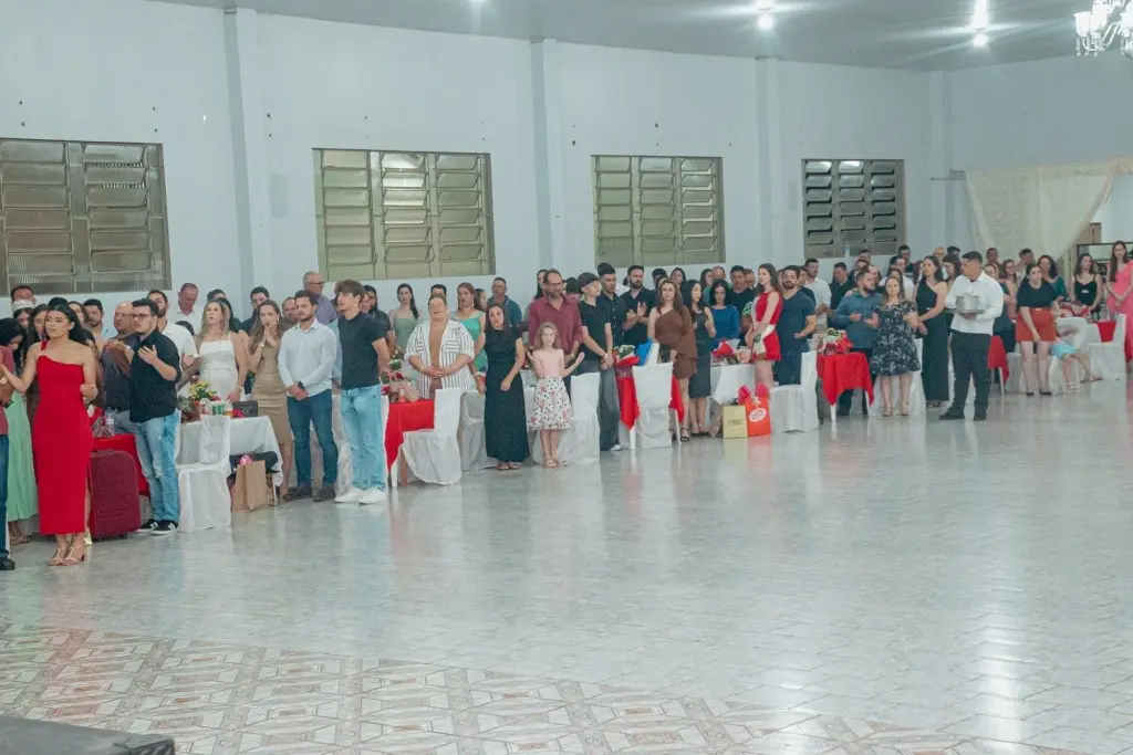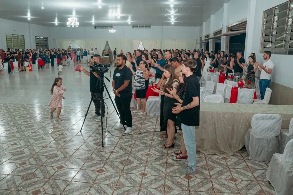 Depois da oficialização da transição, o Padre Odair foi convidado ao palco, onde conduziu uma oração especial, abençoou o novo mandato e realizou a bênção que marcou a abertura oficial do jantar. Um momento de respeito, fé e união que emocionou o público presente.