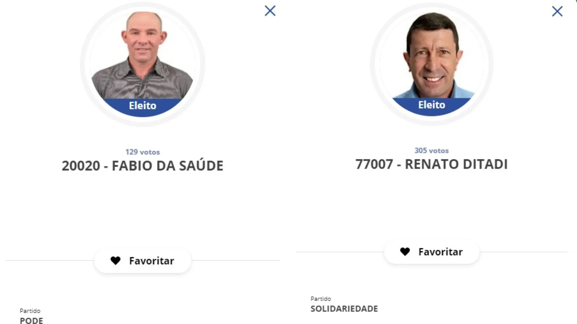 Na cidade de Quatro Barras, o catanduvense Renato Ditadi foi eleito com 305 votos e em Erval Velho, no estado de Santa Catarina, Fábio Trombetta, o Fábio da Saúde, foi eleito pela população com 129 votos.