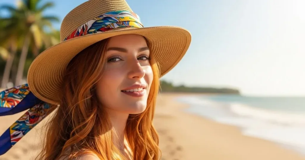 Chapéus de aba larga criam uma barreira física contra os raios UV, cobrindo não só o cabelo, mas também parte do rosto e do pescoço. São ideais para quem vai passar horas na praia, piscina ou em atividades ao ar livre. Tecidos como palha natural, algodão e modelos com proteção UV embutida são ainda mais eficazes.