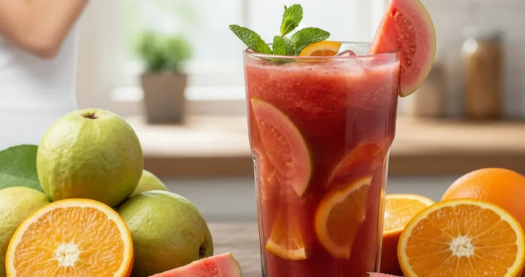 Simples, saboroso e funcional, o suco de goiaba vermelha com laranja é mais uma prova de que a beleza começa no que você coloca no prato ou no copo.