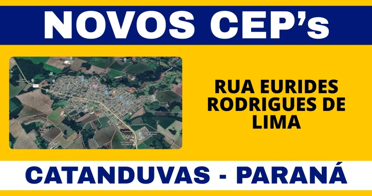 A Rua Eurides Rodrigues de Lima, em Catanduvas, recebeu novos Códigos de Endereçamento Postal (CEPs). Cada trecho da via conta agora com um código específico conforme o bairro, garantindo mais organização, praticidade em cadastros e maior eficiência nas entregas.