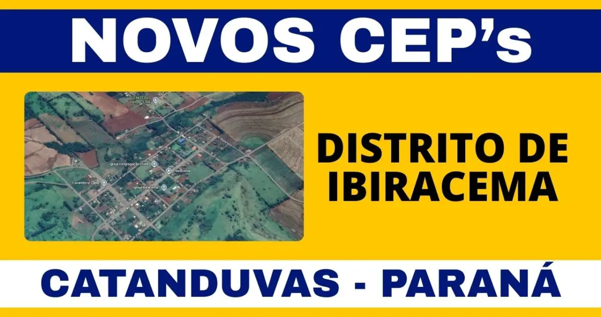 O distrito de Ibiracema, em Catanduvas, passa a contar com novos Códigos de Endereçamento Postal (CEPs). A atualização vai facilitar a identificação das ruas, agilizar entregas e melhorar o acesso dos serviços de correspondência na comunidade.