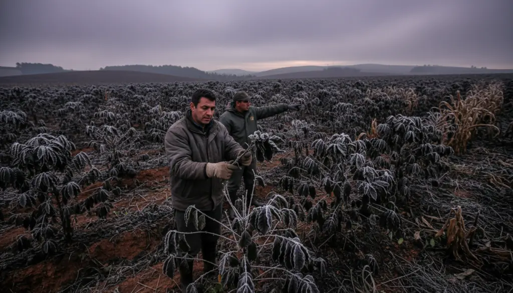 Nós analisamos que o grande perigo da geada negra é o fator surpresa. Na geada branca, o produtor acorda e vê o gelo, conseguindo identificar o problema na hora. Na versão negra, a planta parece estar normal no primeiro momento, mas a morte celular já aconteceu por dentro. Os danos reais só aparecem dias depois, quando já não existe mais nada que possa ser feito para salvar a produção. É um cenário de desolação que muitos agricultores paranaenses ainda guardam na memória de anos anteriores.