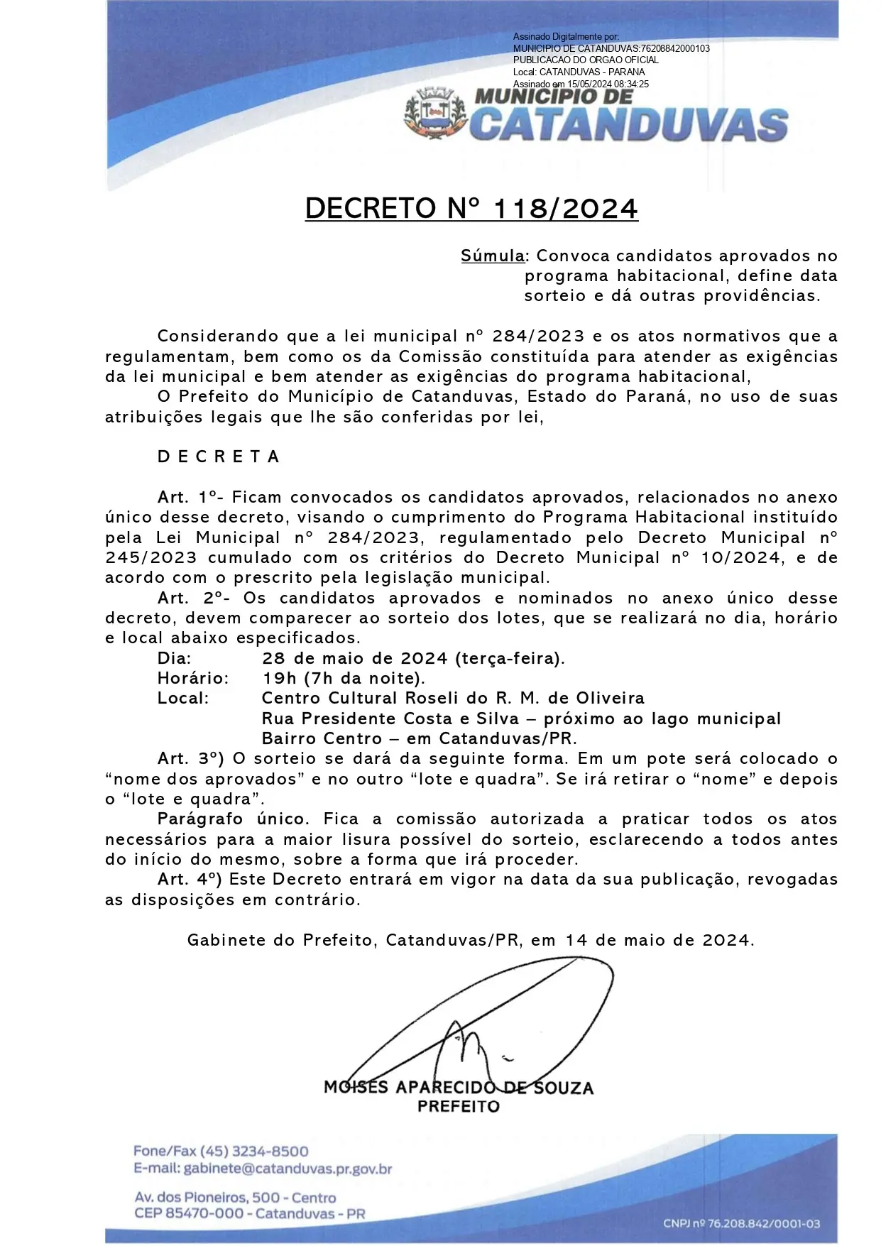 Publicada nesta (quinta-feira) 15 de maio, a lista das famílias aprovadas no programa Habitacional. As mesmas estão convocadas a comparecer em reunião agendada para dia 28 de maio, as 19h no Centro Cultural, onde serão distribuídos através da realização de sorteio, os lotes as famílias aprovadas e demais informações respectivas ao desenvolvimento do programa.