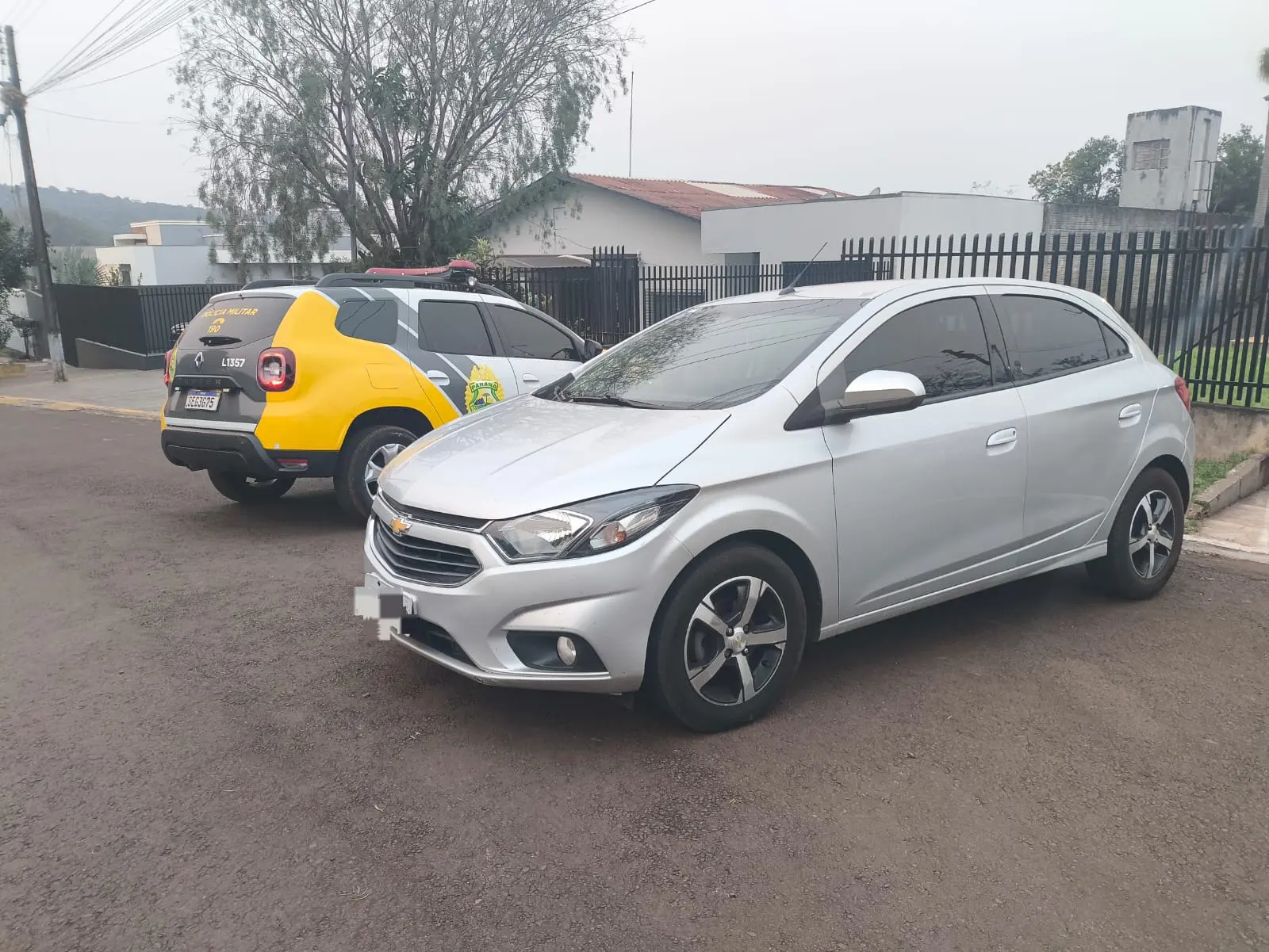 Diante dos fatos, o veículo foi apreendido e encaminhado até o pátio do 98º Ciretran em Catanduvas, por estar com o licenciamento atrasado com o último exercício em 2021.