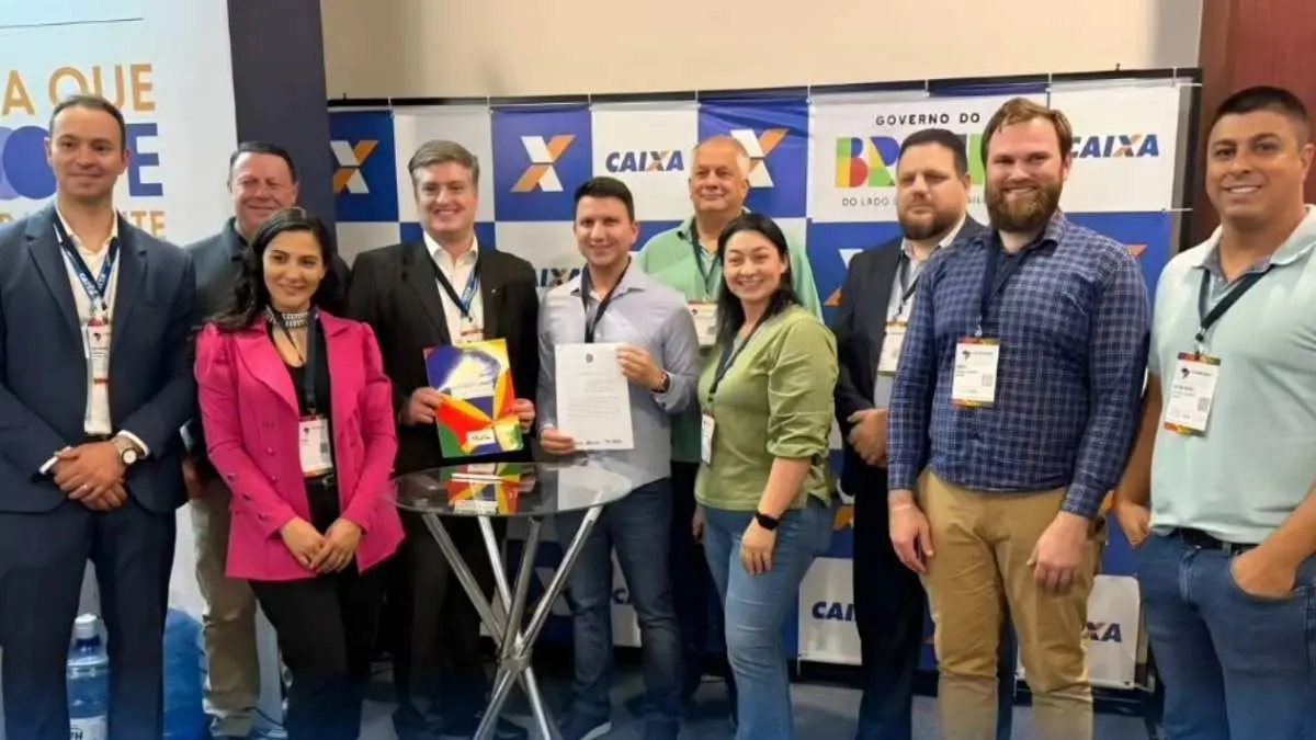 O ato oficial de assinatura contou com a participação de autoridades importantes, como o vice-prefeito Lindomar dos Santos e o secretário de Planejamento Douglas Dall Apria, além de representantes da Caixa Econômica Federal, do Governo e membros da Comissão Habitacional local.