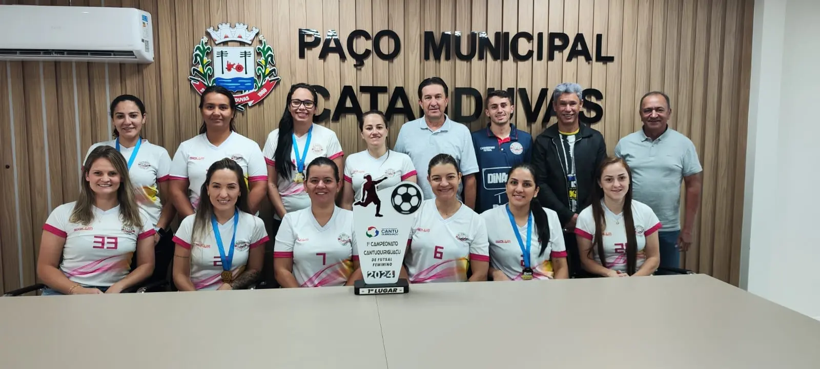Na manhã desta sexta-feira (13), o Prefeito Professor Moisés recebeu, em seu gabinete, a equipe de futsal feminino de Catanduvas, campeã da Copa Cantu de Futsal Feminino 2024. A equipe conquistou o título na noite de terça-feira (10), quando viajou até a cidade de Reserva do Iguaçu para disputar a grande final contra a equipe de Candói.