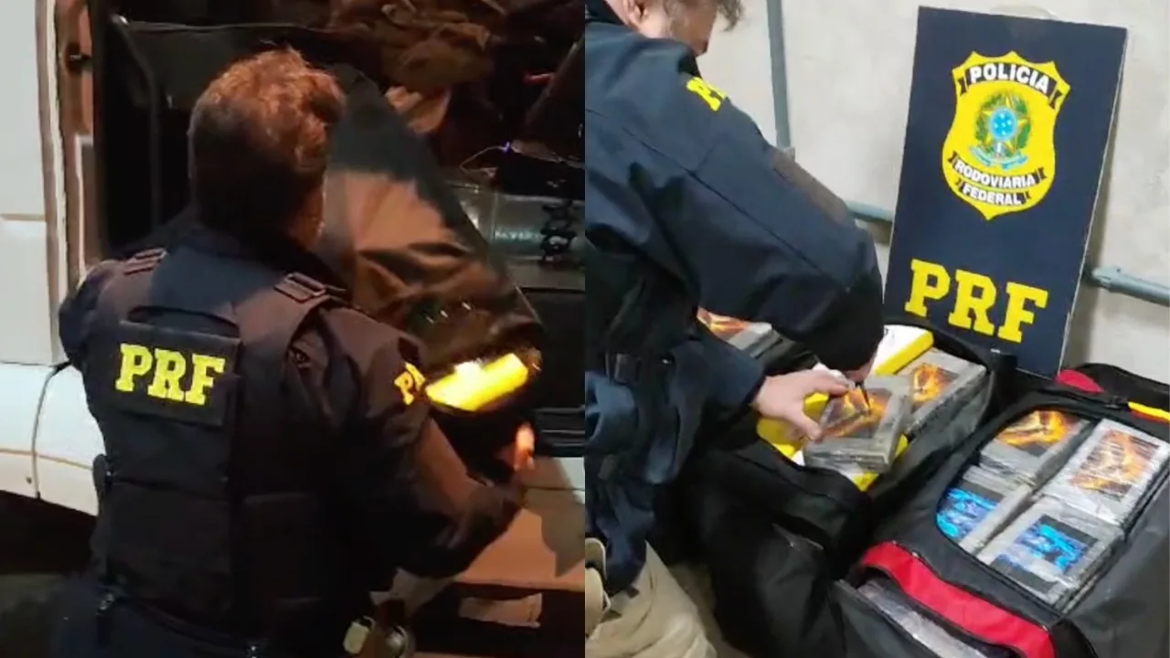 Os PRFs constataram que o container estava vazio e ao fiscalizar a cabine, encontraram diversas bolsas, nelas estavam os tabletes de cocaína.