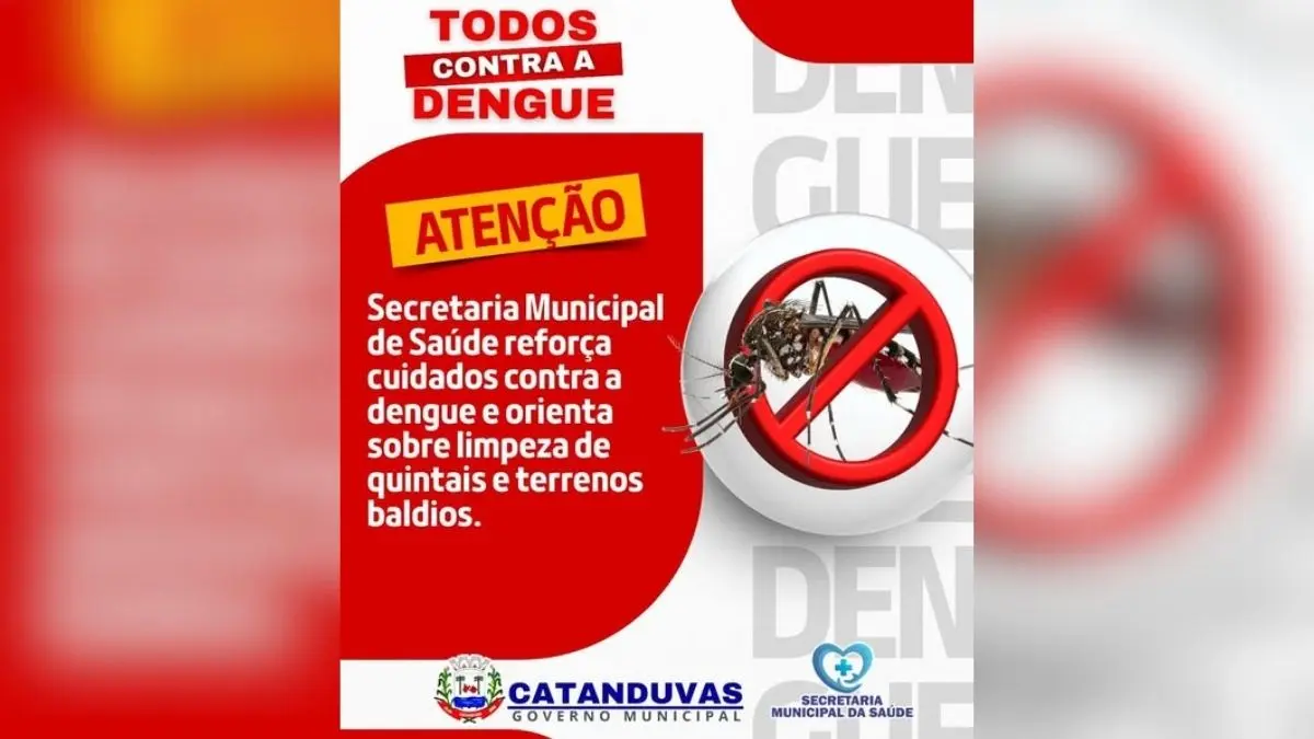 A Secretaria Municipal de Saúde de Catanduvas acendeu o sinal de alerta. Com o aumento do calor e das chuvas, cresce também o risco de proliferação do mosquito Aedes aegypti, transmissor da dengue. E a mensagem é clara: sem a participação da população, o combate não funciona.