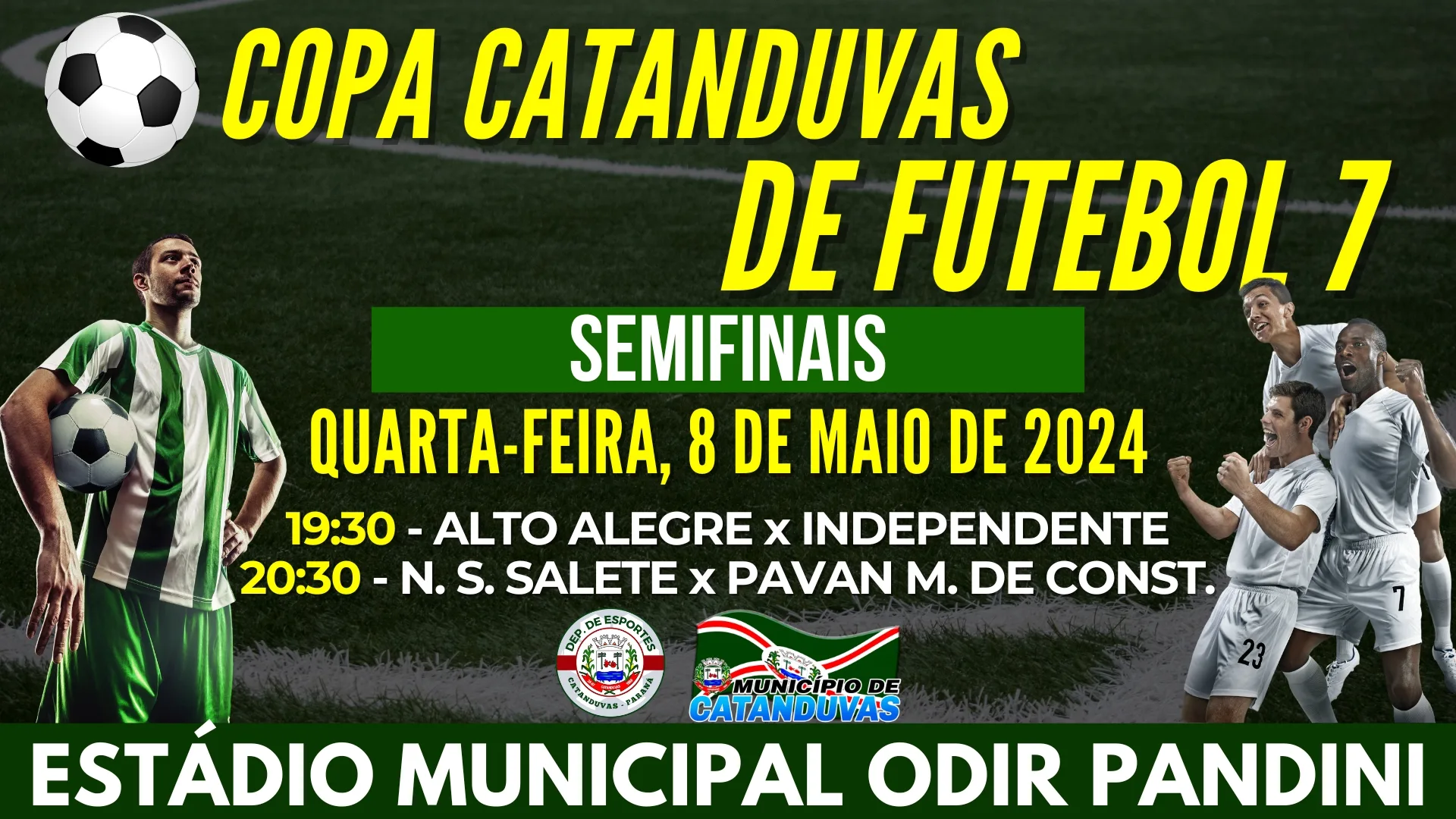 Serão realizadas na noite da próxima quarta-feira, 8 de maio, as semifinais da Copa Catanduvas de Futebol 7, a partir das 19h30min, no Estádio Municipal Odir Pandini, confira os confrontos: